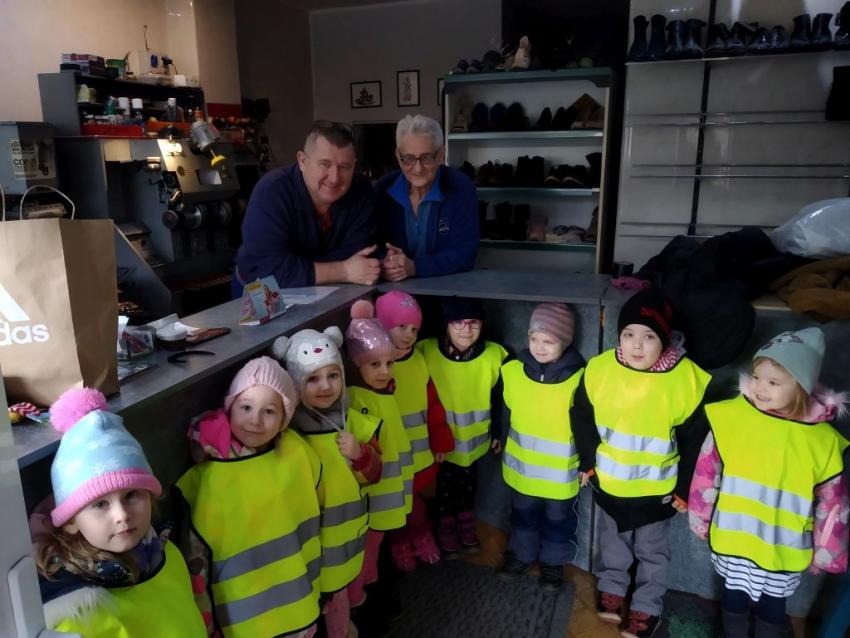 Dzięki uprzejmości panów pracujących w lokalnym zakładzie szewskim, dzieci z grupy Rybki miały okazje zapoznac się z zawodem szewca, obejrzeć jak wygląda jego praca oraz materiały z których powstają buty. Bardzo dziekujemy Zakładowi Szewskiemu Zbigniew Maciaszek za możliwość odwiedzin!